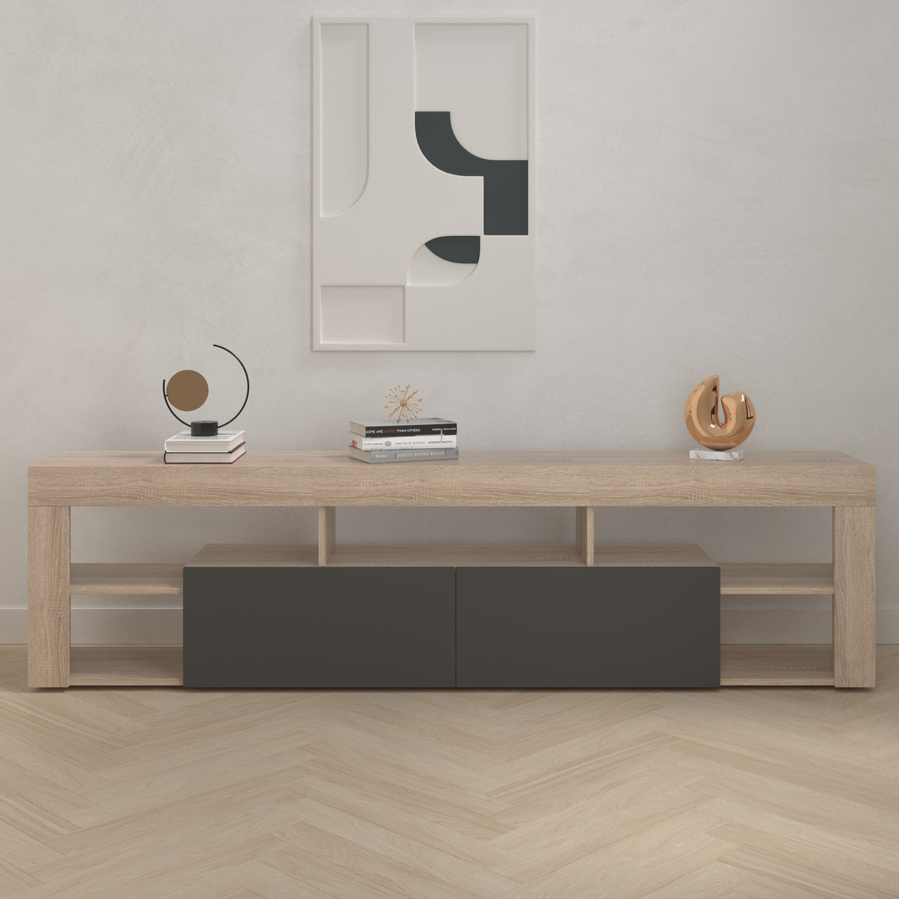 -4%Тумба під телевізор, комод для дому під ТВ з 5 полицями та 2 нішами з ДСП II K-200 Дуб+антрацит
