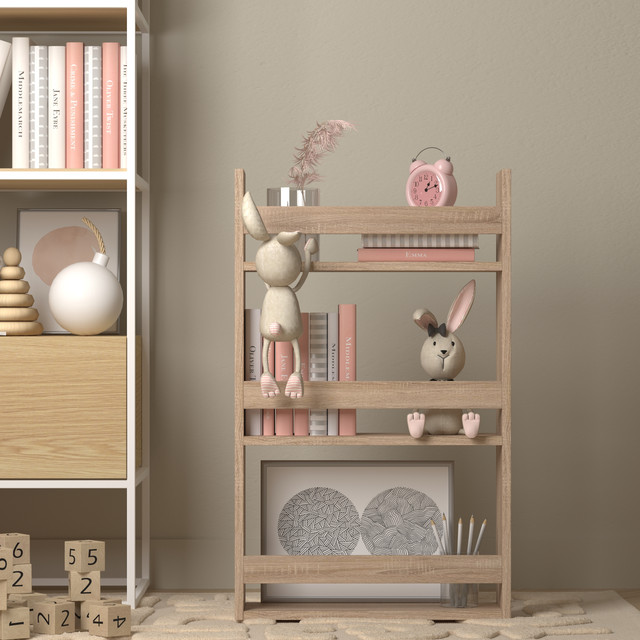 Стиль та дизайн: Ця підлогова полиця поєднує в собі сучасний стиль та практичність. Її простий і елегантний дизайн доповнить інтер'єр дитячої кімнати, додавши в неї стиль та функціональність.